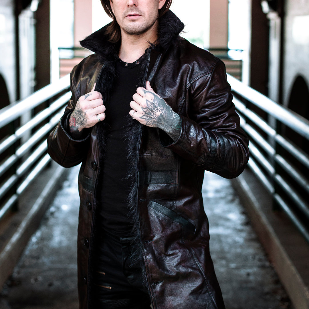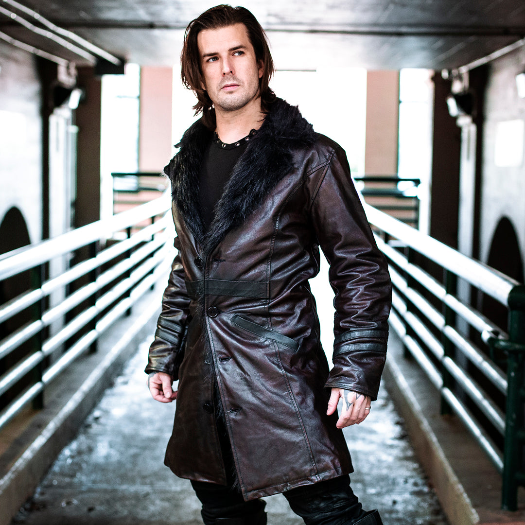 Men's Havok Coat - Oxblood Burgundy with Black Fur