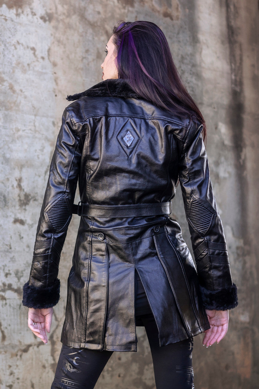 Our Havok Coat is hand-crafted from amazing quality selected leathers chosen for a specific flexibility in comfort and feel. The inside collar features a lush faux fur that provides an amazing look without agitation for the wearer. The torso lines on the coat are cut to contour to your body and highlight your best features. Inside is a warm fleece lining with an inside pocket to keep your valuables close. The back, shoulders, and arms are more open with consideration for movement and activity - one must be able to perform their most elaborate and powerful movements while wrapped in the power of their Havok Coat.