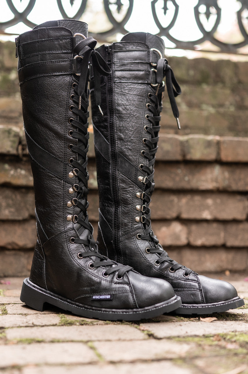 Durable knee-high leather boots that are ready for anything.  Custom boot soles by Verillas that last for years and miles of daily wear. Styled for alt fashion without over doing it.  Made ultra light and form fitting so you don't feel confined by a bulky stiff boot for long term wear.