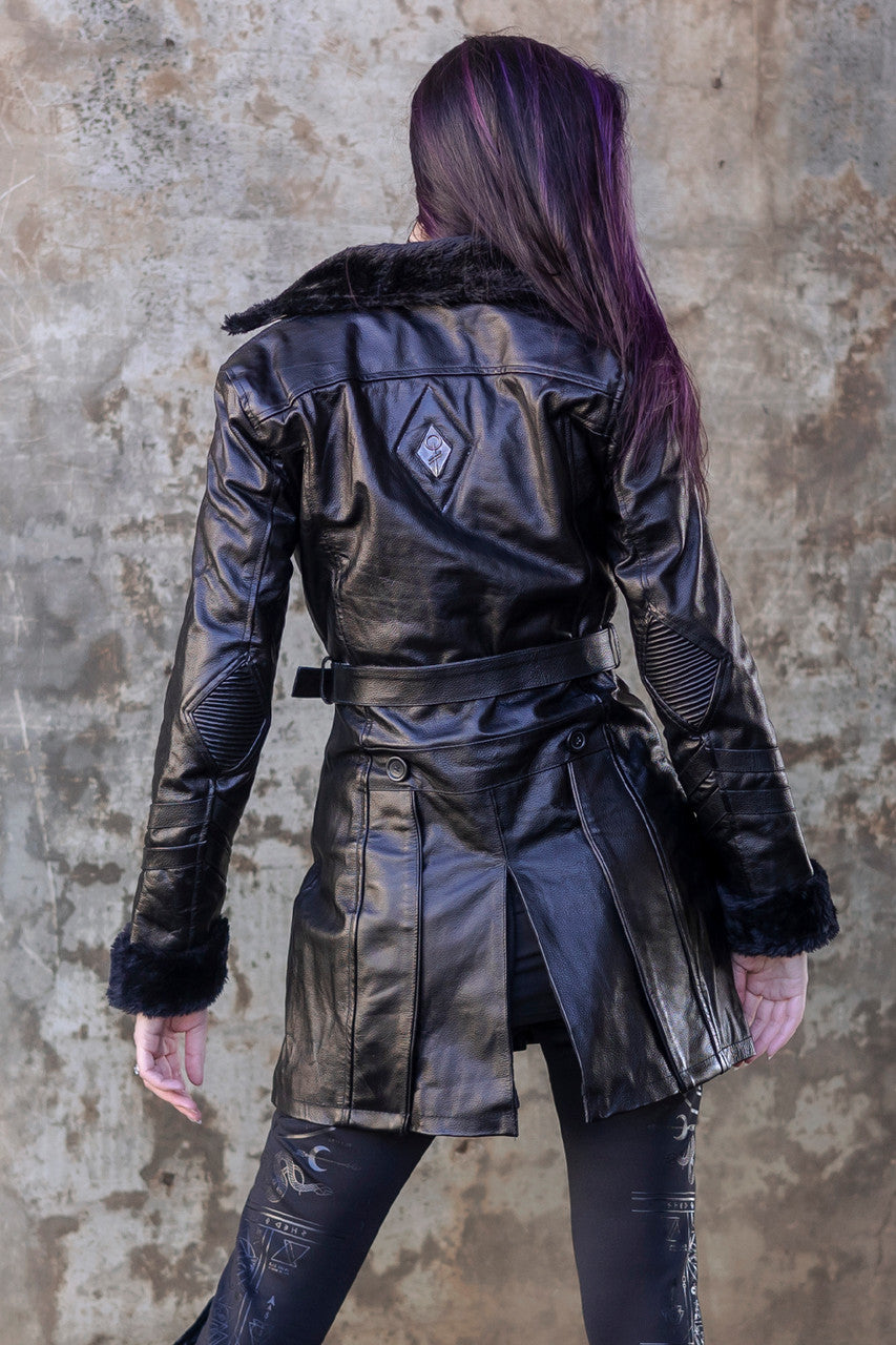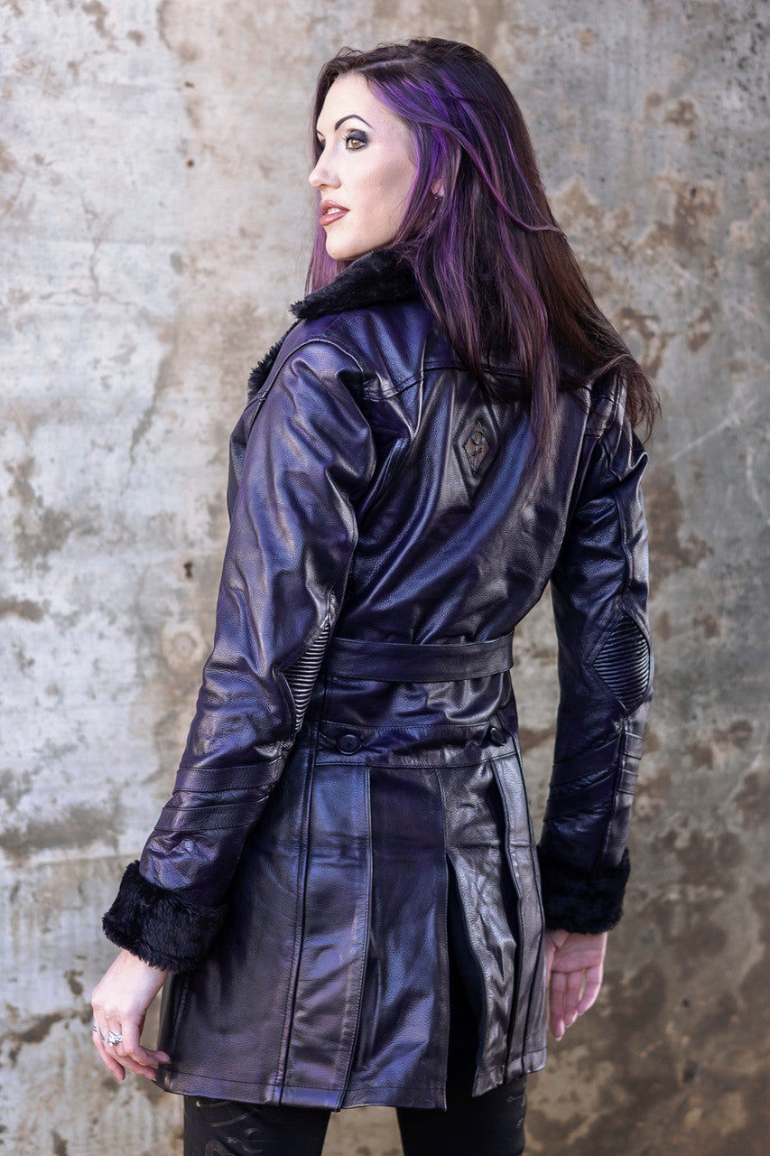 Our Havok Jacket is hand-crafted from amazing quality selected leathers chosen for a specific flexibility in comfort and feel. The inside collar features a lush faux fur that provides an amazing look without agitation for the wearer. The torso lines on the coat are cut to contour to your body and highlight your best features. Inside is a warm fleece lining with an inside pocket to keep your valuables close. The back, shoulders, and arms are more open with consideration for movement and activity - one must be able to perform their most elaborate and powerful movements while wrapped in the power of their Havok Coat.