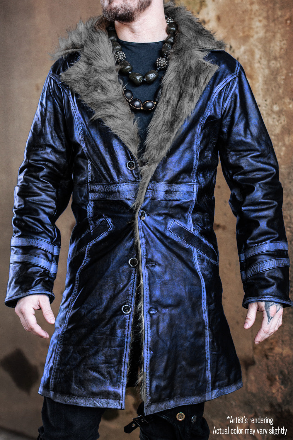 Our Havok Coat is hand-crafted from amazing quality selected leathers chosen for a specific flexibility in comfort and feel. The inside collar features a lush faux fur that provides an amazing look without agitation for the wearer. The torso lines on the coat are cut to contour to your body and highlight your best features. Inside is a warm fleece lining with an inside pocket to keep your valuables close. The back, shoulders, and arms are more open with consideration for movement and activity - one must be able to perform their most elaborate and powerful movements while wrapped in the power of their Havok Coat.