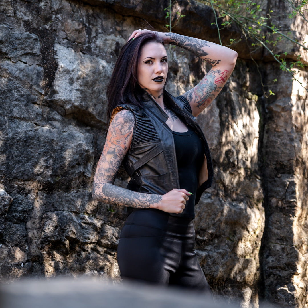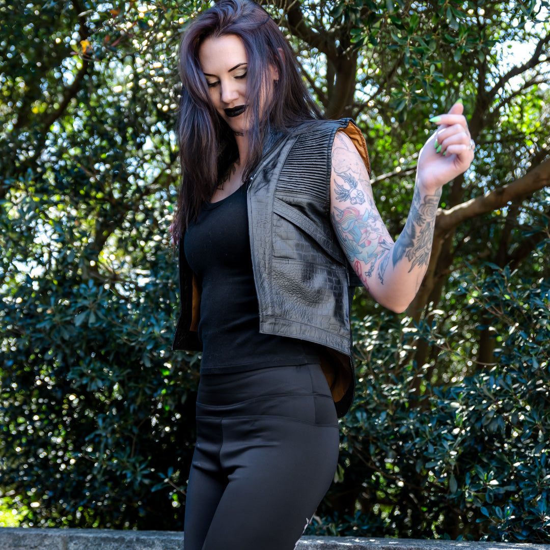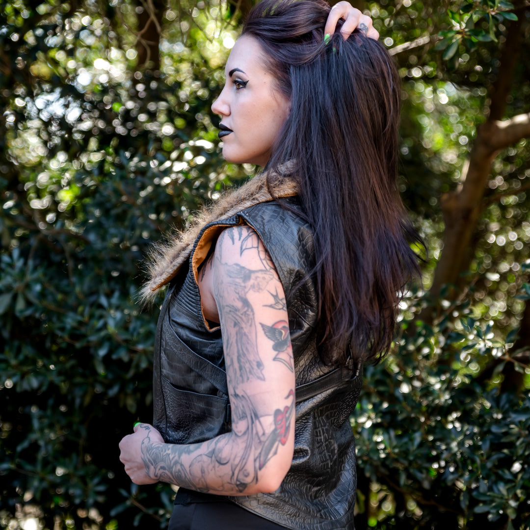Havok Vest - Black Gator Skin with Tan Fur