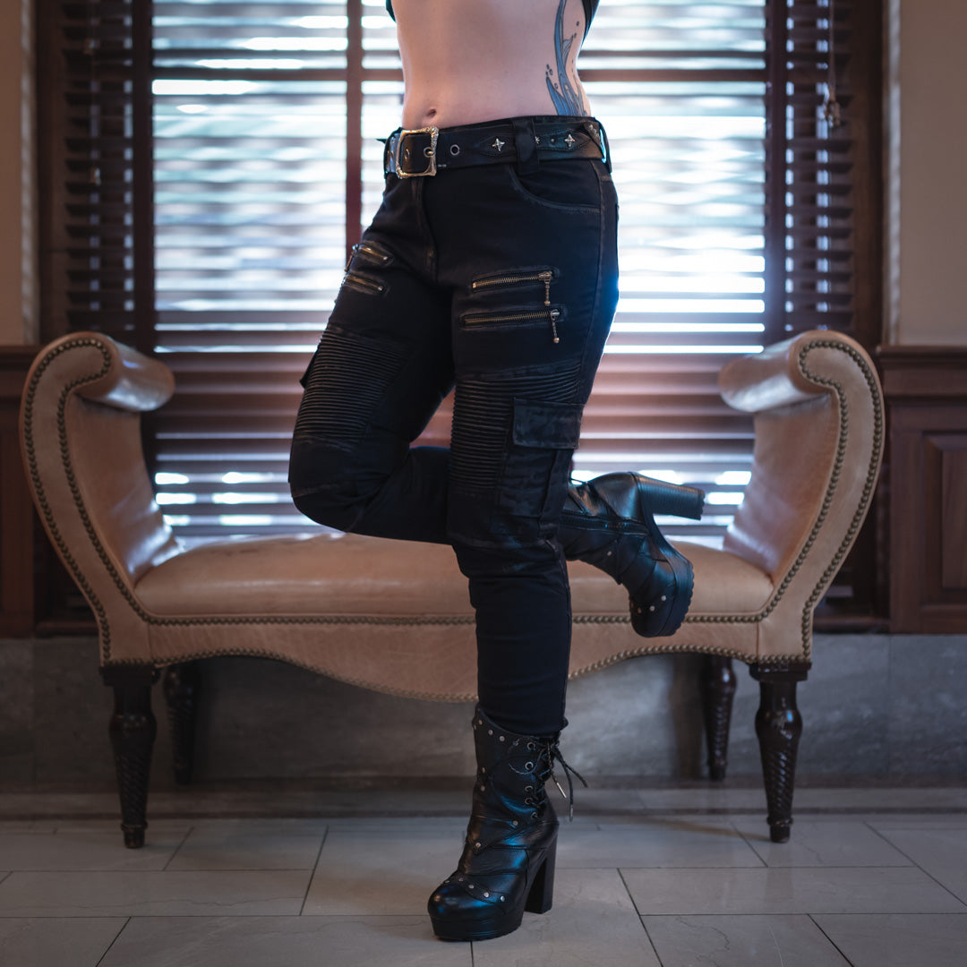 Jeans, reimagined for a sleek fit with plenty of stretch to move with you, and 6 pockets worth of utility so you’re not carrying a purse. Built to last from desert festivals to long rides on your motorcycle. A timeless distressed look with hints of post apocalyptic fiction that will only look better with age. Whether your style is road warrior, rock on stage, or the quiet rider in the back of the room, we designed these to be the first bottoms you reach for every time.