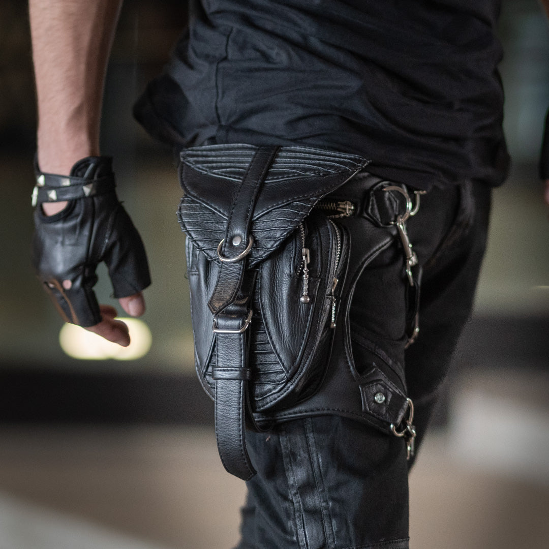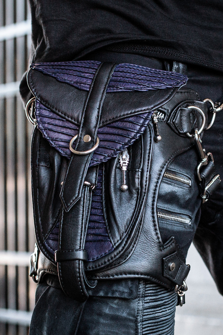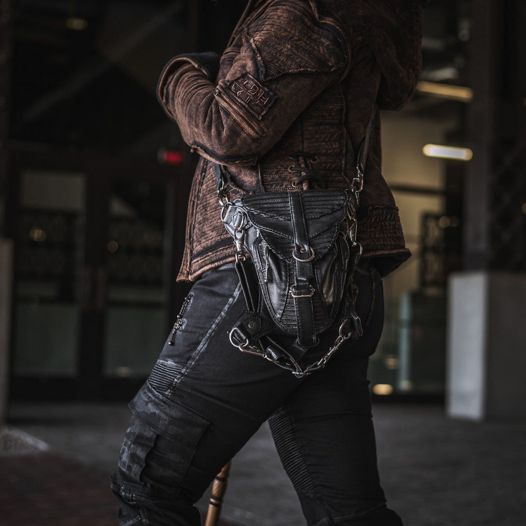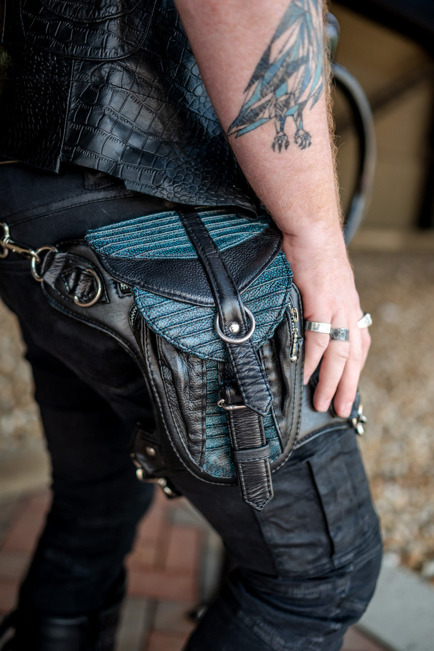 The Gunslinger Stash is a finely handcrafted leather satchel that can be worn on your hip, across your body like a satchel or purse, or converted into a backpack using the two smaller straps combined to make a second long strap. Perfect for travel, perfect for events like burning man, metal concerts, music festivals, or even a trip to wasteland weekend. Keep your stash safe in the hidden pocket (great for passports or cash) while keeping your phone and keys in the quick access zip pockets at the ready. And for those who partake, this is excellent for small form concealed carry.