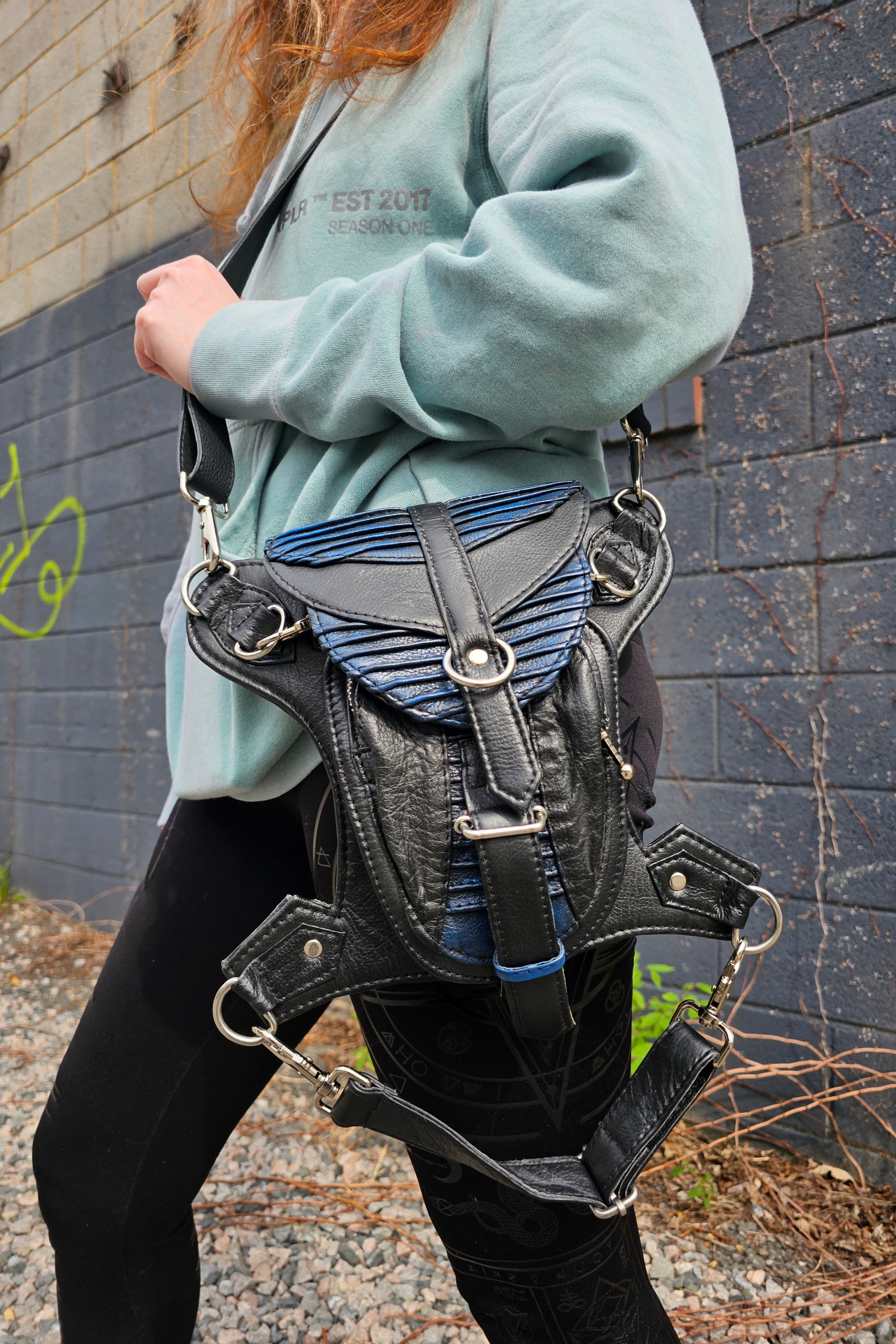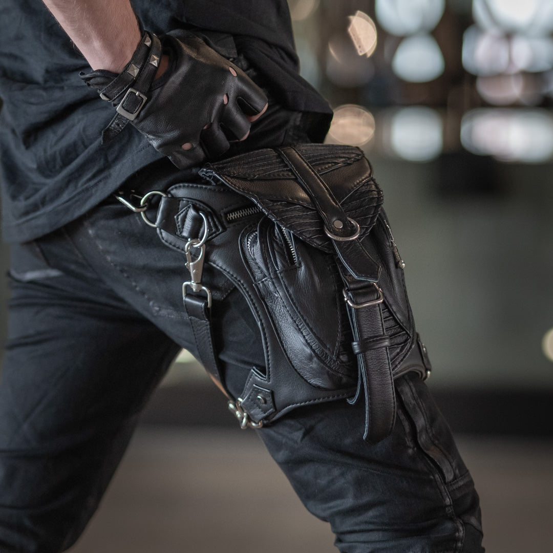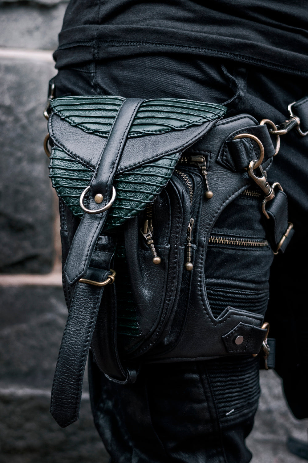 The Gunslinger Stash is a finely handcrafted leather satchel that can be worn on your hip, across your body like a satchel or purse, or converted into a backpack using the two smaller straps combined to make a second long strap. Perfect for travel, perfect for events like burning man, metal concerts, music festivals, or even a trip to wasteland weekend. Keep your stash safe in the hidden pocket (great for passports or cash) while keeping your phone and keys in the quick access zip pockets at the ready. And for those who partake, this is excellent for small form concealed carry.
