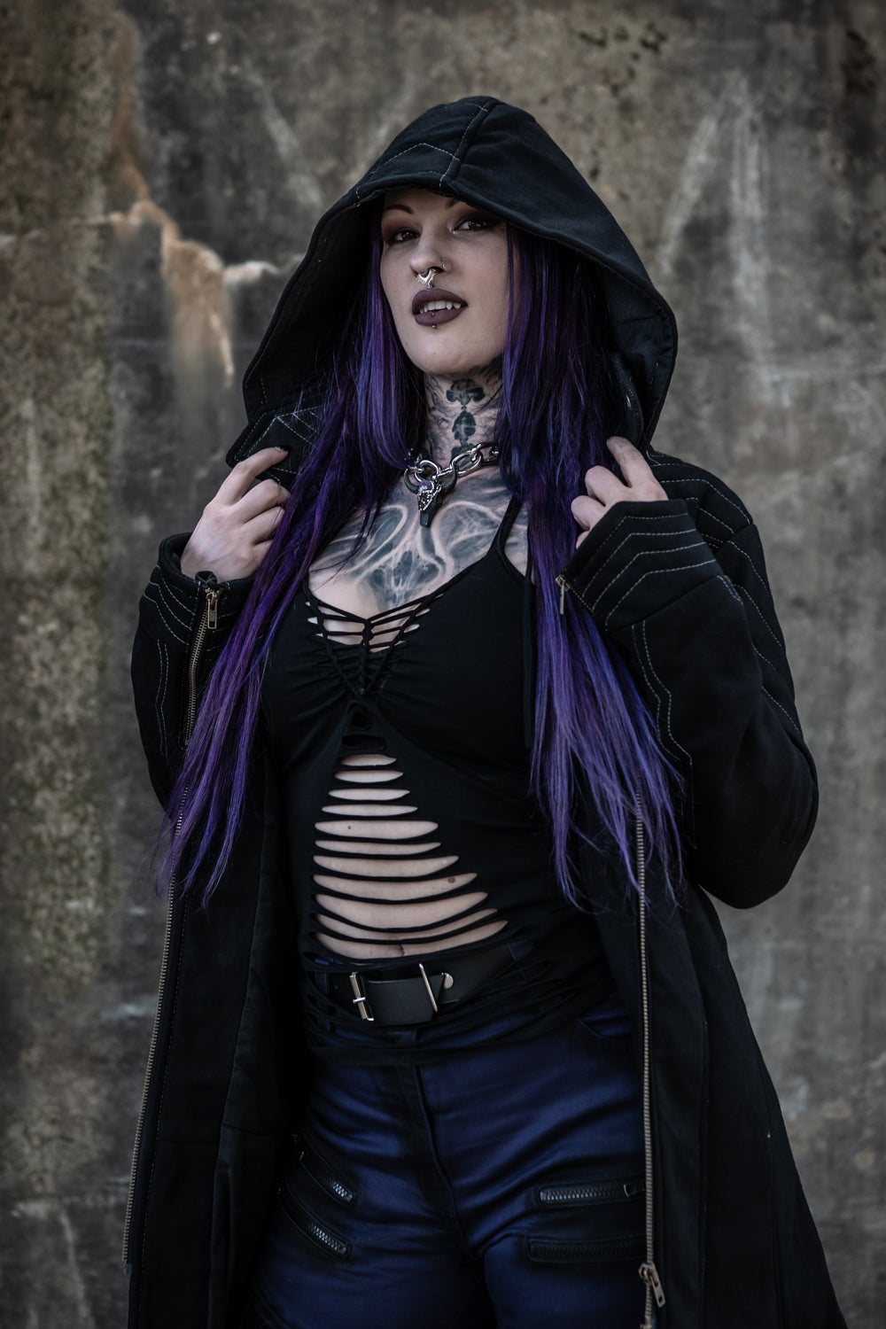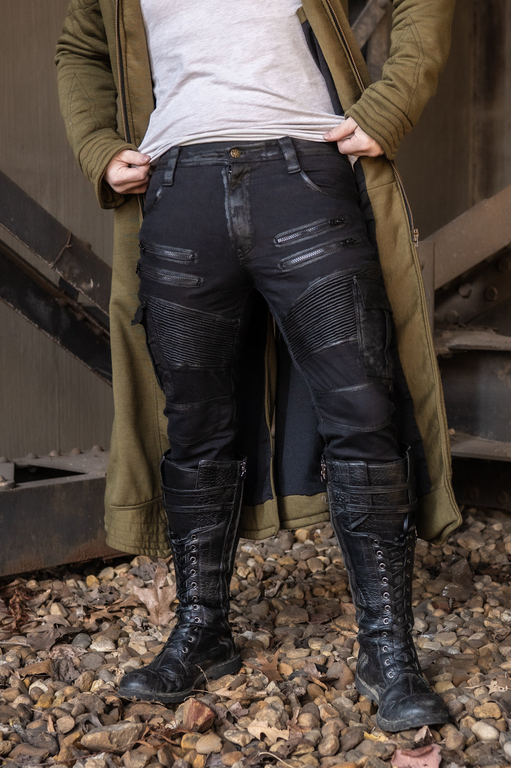 This feature rich gothic button up is one of the finest designs we have ever launched in Men's Tops. The fabric is stretch, soft, and comfortable, while retaining a perfect vibrant hue. Avoid the machine dryer and keep it vibrant forever. The sleeve cuffs feature a bracer-like layered design perfection-stitched to hint at a post-apocalyptic style while still looking crisp and new after many wears. The sides of this shirt feature a strap and button system that can tailor or loosen the fit of this shirt on command, for those who may gain or lose body mass on occasion. Like our boots that lace-adjust, we thought of a shirt style that is worth the price, as it will grow or shrink a bit with you.